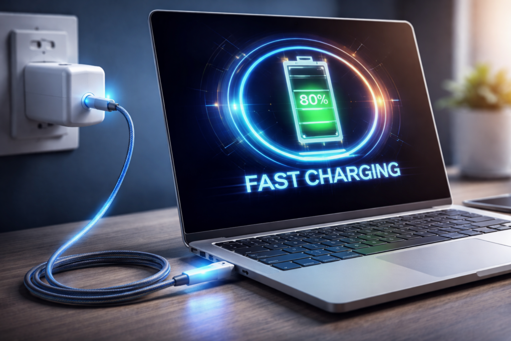 Adaptive charging adjusts charging speed based on battery health and user behavior. This feature improves the lifespan of laptops using fast charging laptop technology explained 2026.